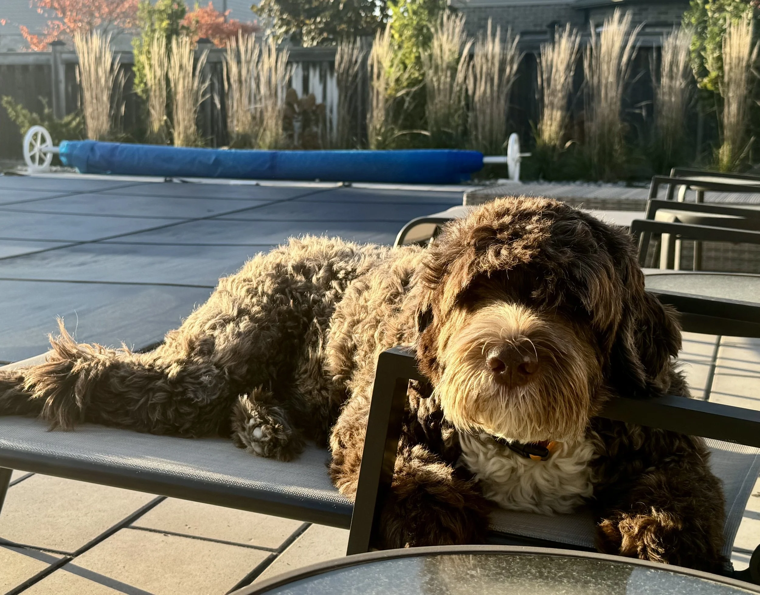 Our good boy Ted needed to leave us too soon. We joked that he was our Portuguese Land Dog, as he chose to drink out of our pool instead of swim in it. He was always good for a drive by lick, gave the best hugs and could clear a table with his happy tail. He truly was our favourite hello and is our hardest goodbye.